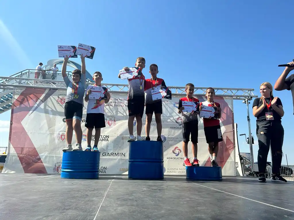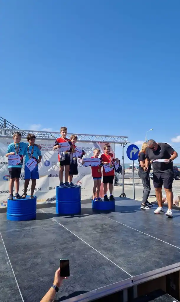 Alaturi de antrenori, cei mai mici sportivi si-au depasit orice teama și au terminat cursa cu zambetul pe buze.